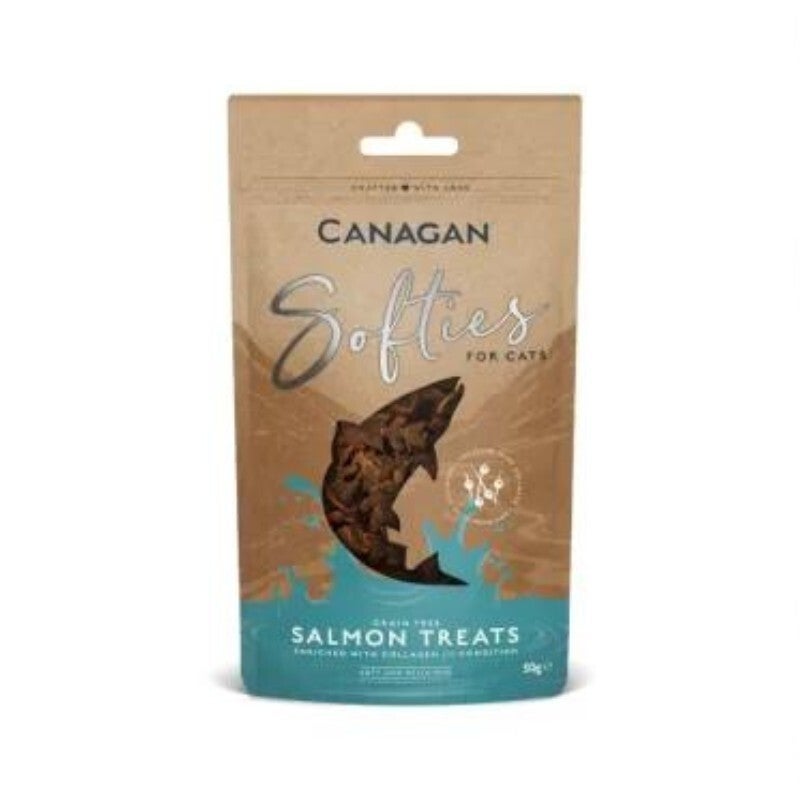 Gli snack per gatti Canagan Softies Salmon sono dei gustosi bocconcini semi morbidi arricchiti con collagene.