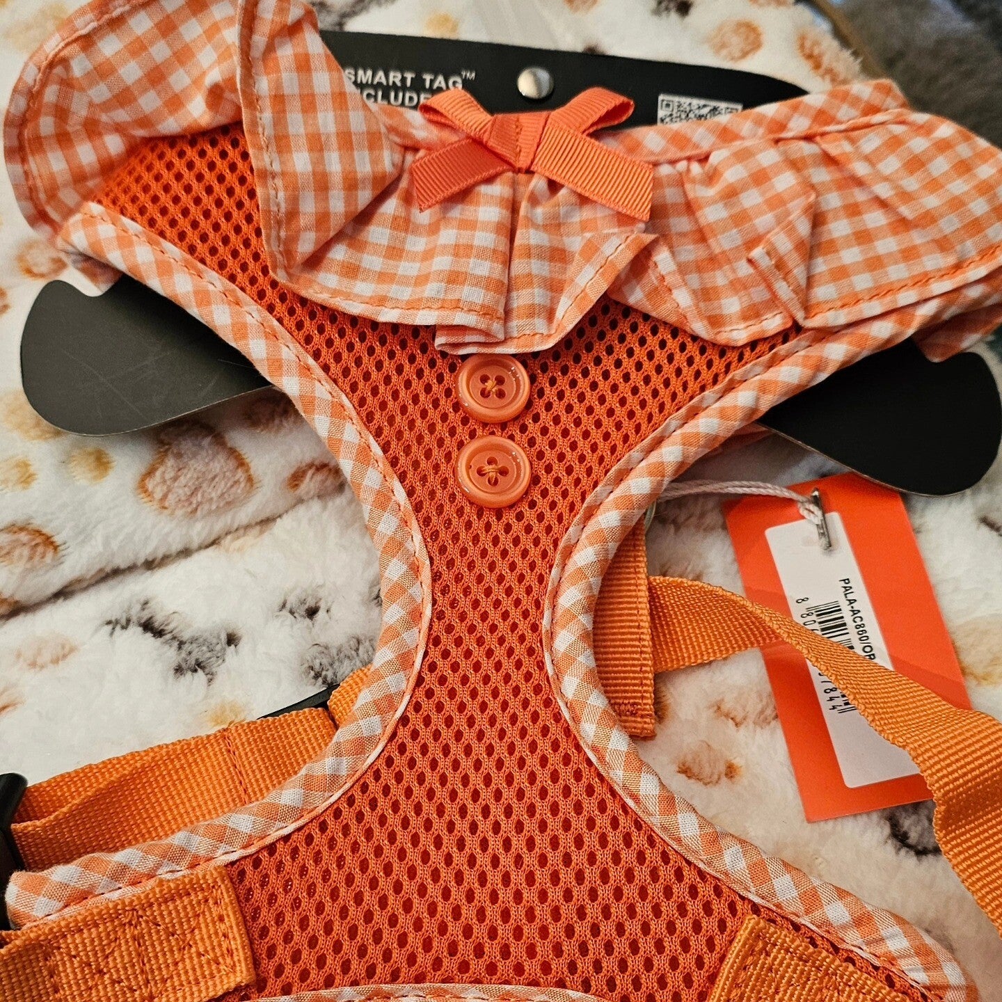 Questa pettorina garantisce massima sicurezza e comfort per il vostro cane, ma fornendo gli ultimi stili della moda. Un vero must per i cani più alla moda, con design divertente ma elegante. Raccogliete tutto il set dipsonibile e create l’oufit perfetto per assicurarvi che il vostro migliore amico sia il più ammirato quando è fuori in città con voi! VIVIEN HARNESS A è realizzato in 100% poliestere (esterno e fodera), ha fronzoli a scacchi ed è decorata con nastro e bottone; ha cintura regolabile.