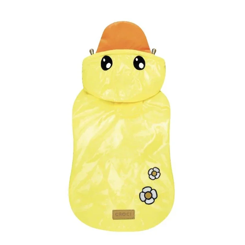 Trasforma il tuo pet in un simpatico paperotto con il nuovo impermeabile cane Papero. La giacca per cani con cappuccio è realizzata in tessuto impermeabile anti-pioggia e anti vento tutto giallo. Il cappuccio è abbellito da decori ricamati che rappresentano un simpatico papero.