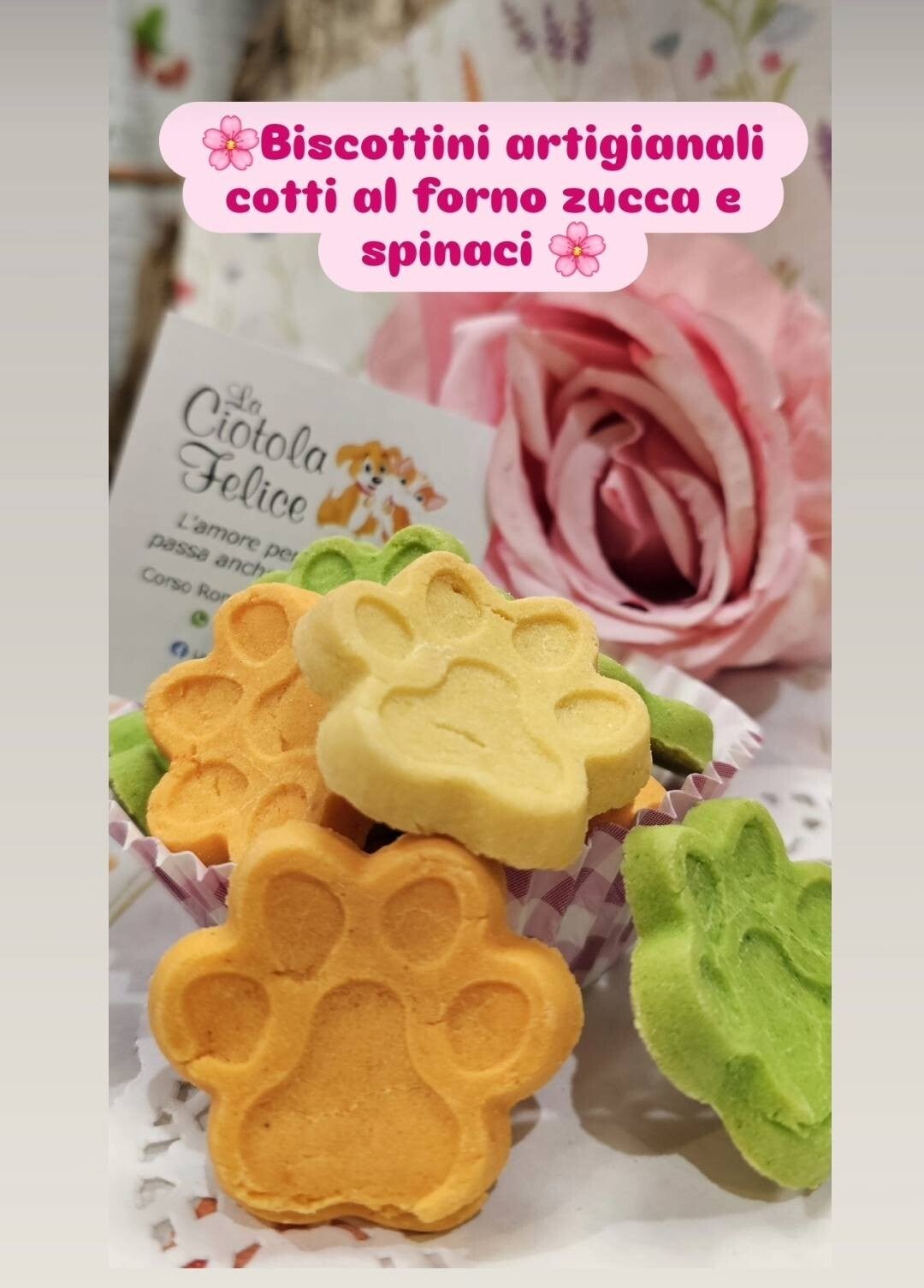 Biscottini artigianali cotti al forno zucca e spinaci in deliziose confezioni regalo